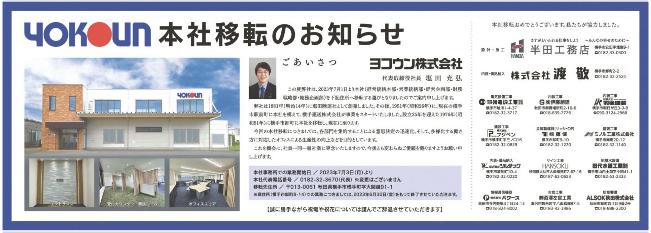 岩手ヨコウン株式会社 本社移転のお知らせ