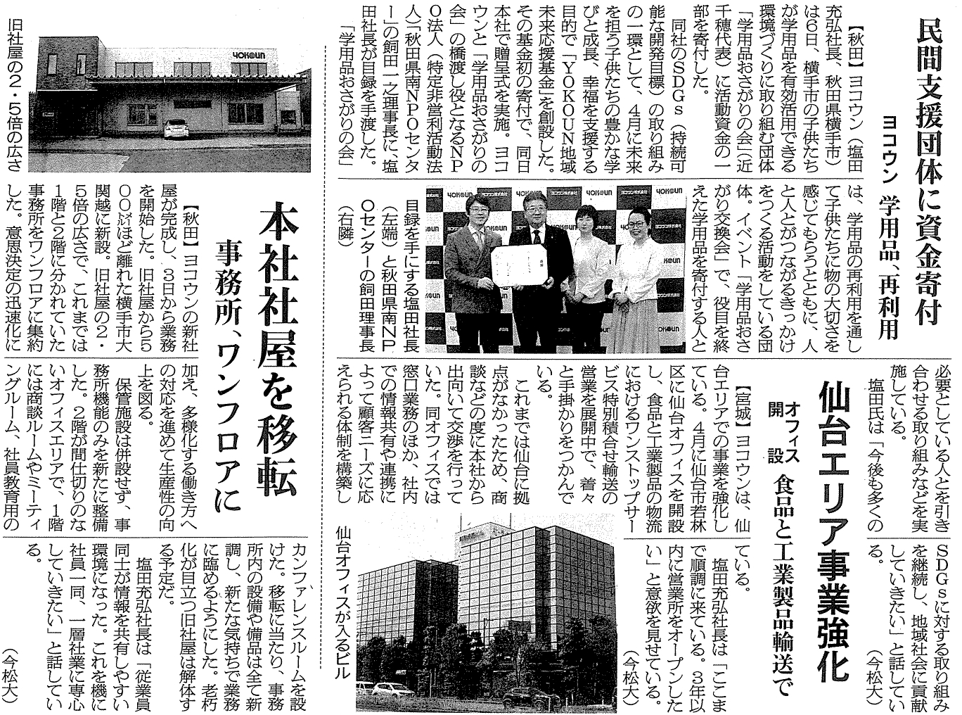 7月3日付の秋田さきがけ新聞に弊社の社社屋移転の記事が掲載されました。 Screenshot