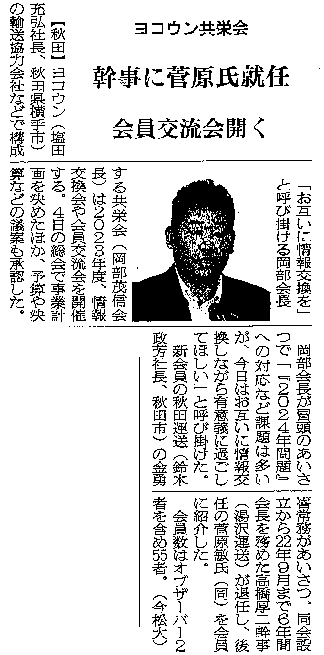 9月19日付の物流ニッポン新聞に弊社の共栄会の記事が掲載されました。