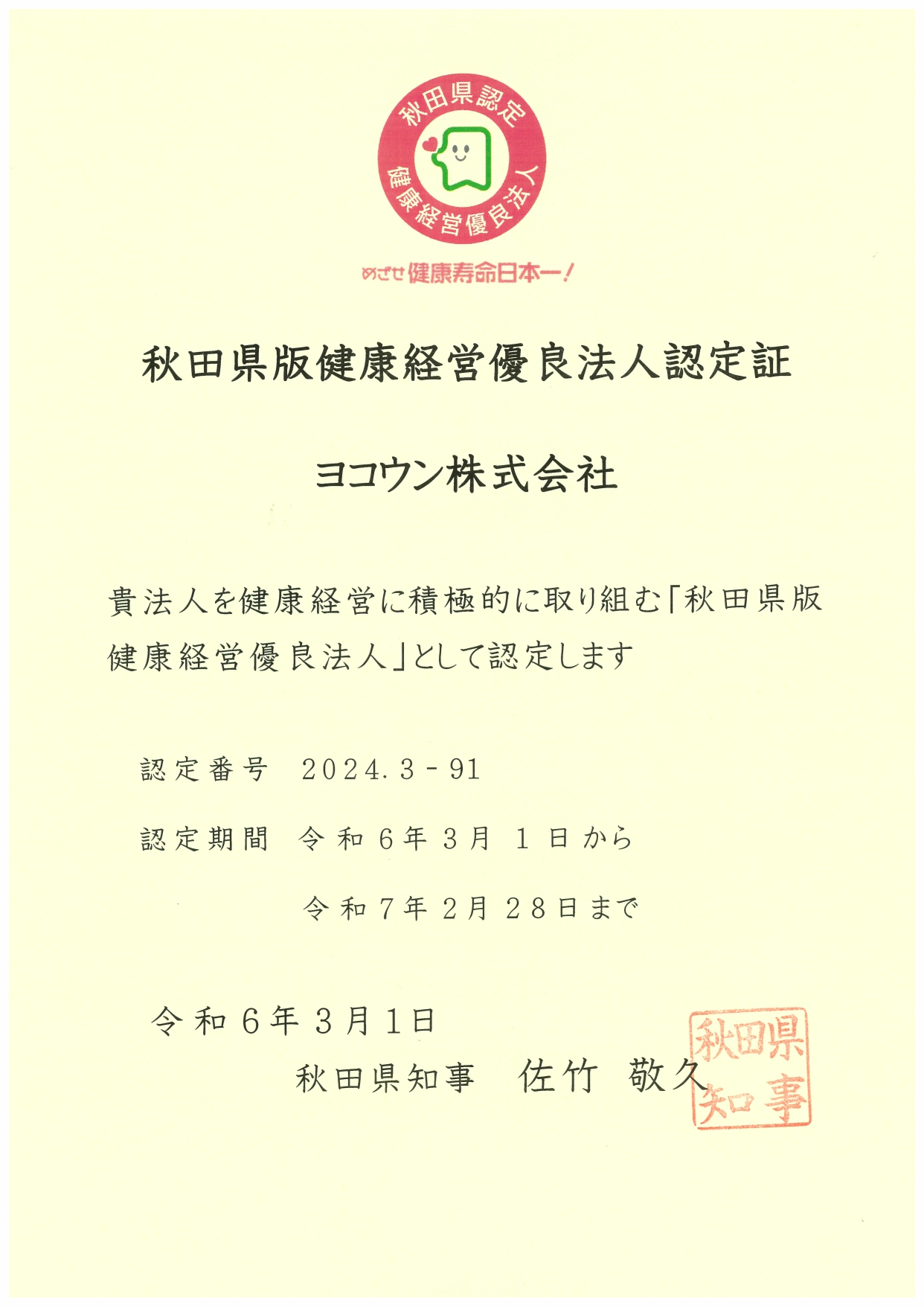 【広報】秋田県版健康経営優良法人に認定されました